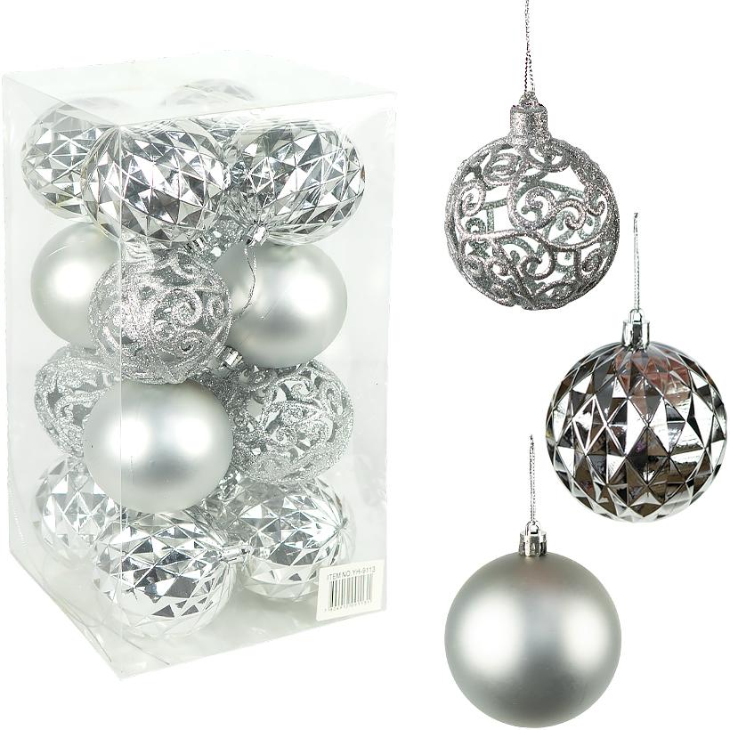 Набор новогодних шаров 16шт D8см "Серебро" YH-9113