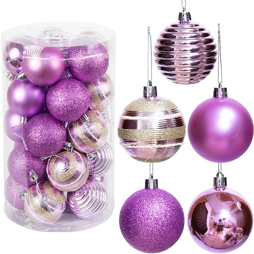 РАСПРОДАЖА! Набор новогодних шаров 25шт D6см "Фиолетовый " (5 дизайнов по 5шт) YH-9287 тубус