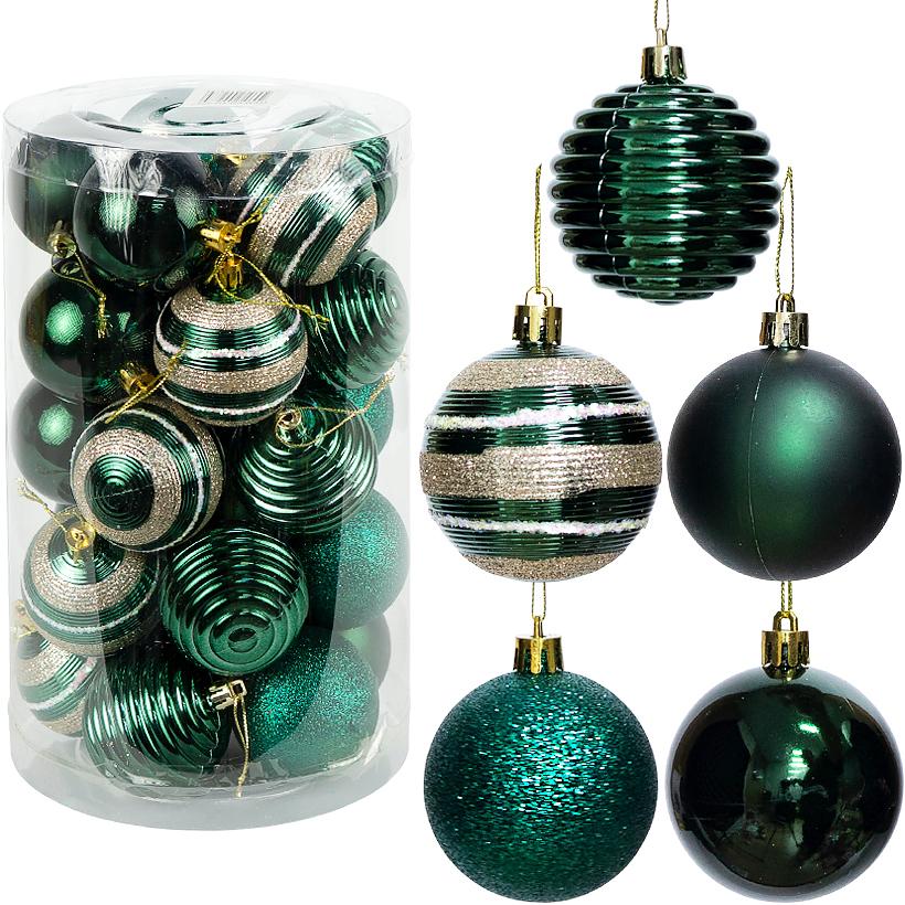 Набор новогодних шаров 25шт D6см "Изумруд " (5 дизайнов по 5шт) YH-9287 тубус