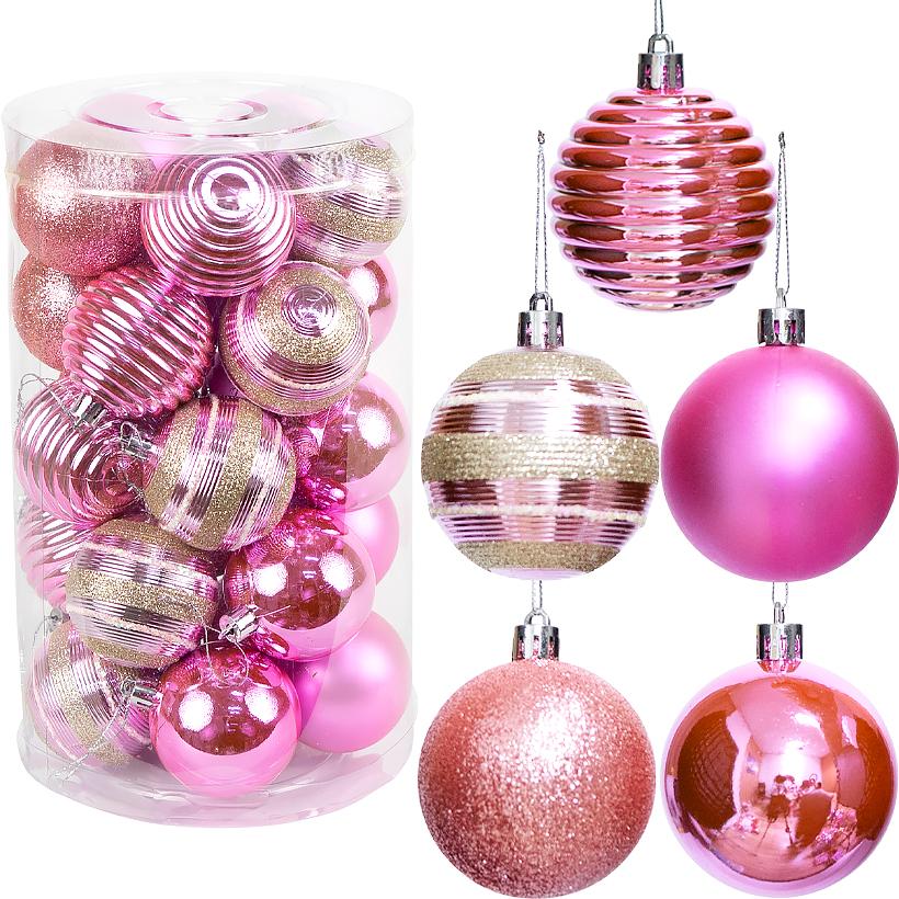РАСПРОДАЖА! Набор новогодних шаров 25шт D6см "Розовый " (5 дизайнов по 5шт) YH-9287 тубус