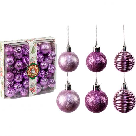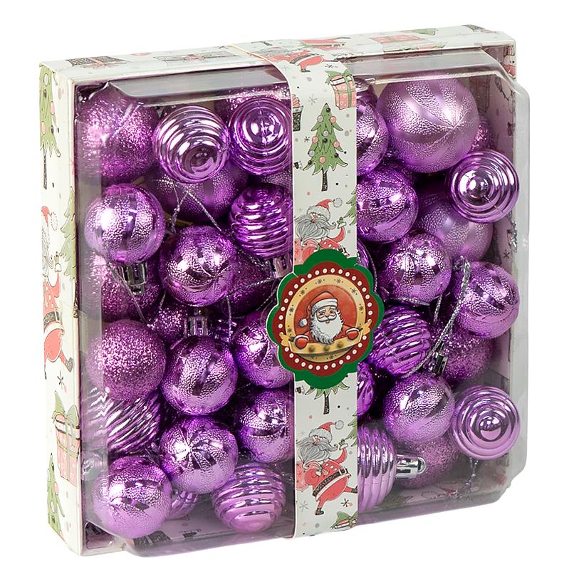 АКЦИЯ! Набор новогодних шаров 48шт D4см/3см "Фиолетовый блеск" YH-9576