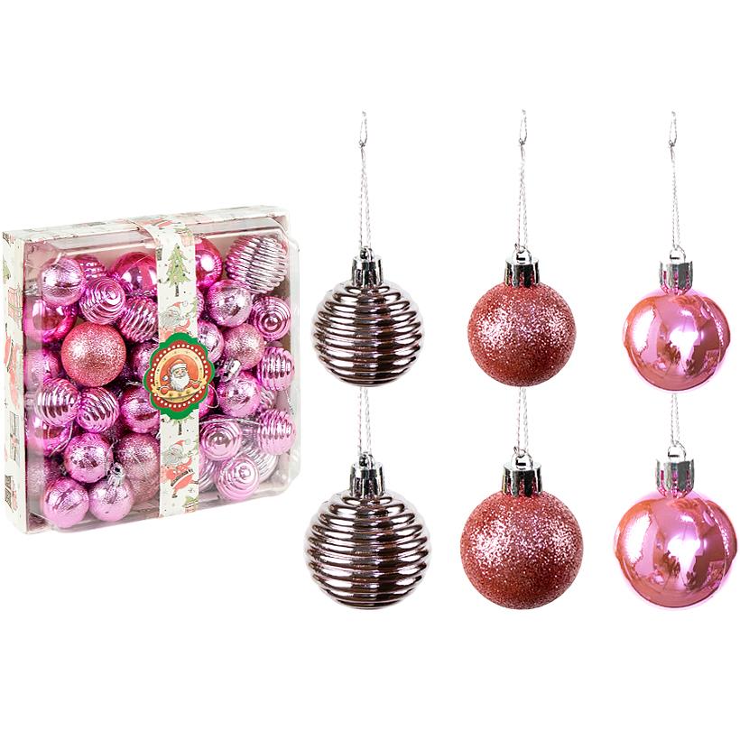 РАСПРОДАЖА! Набор новогодних шаров 48шт D4см/2,5см "Розовий блеск" YH-9576