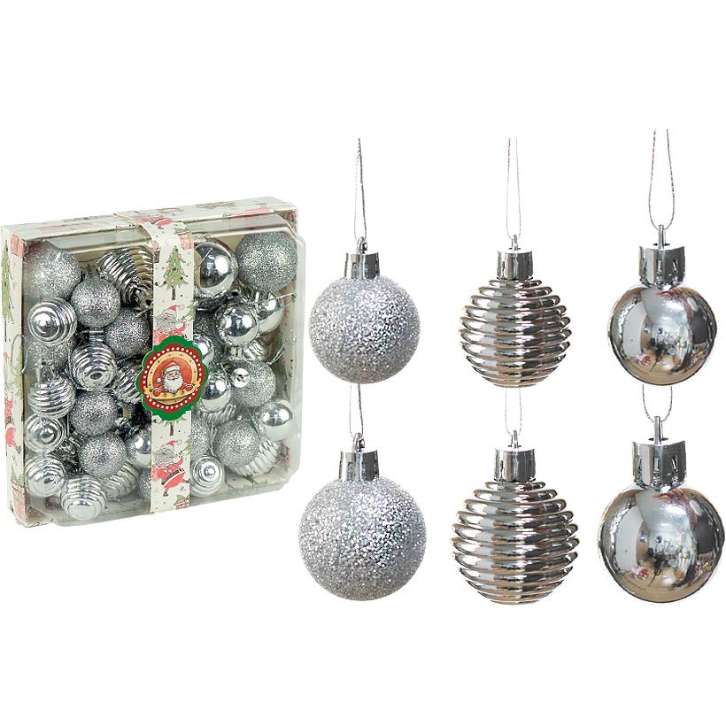 Набор новогодних шаров 48шт D4см/2,5см "Серебряный блеск" YH-9576