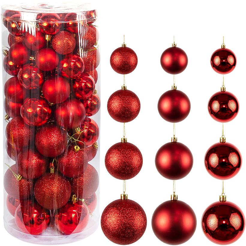 Набор новогодних шаров — классическое украшение для ёлки и праздничного декора. В комплект входят шары диаметром 5 см — 24 шт., 6 см — 20 шт., 7 см — 16 шт., 8 см — 12 шт. Поверхности представлены в трёх вариантах: глянцевые, матовые и блестящие, что создаёт гармоничное сочетание фактур. Упакованы в прозрачный тубус диаметром 21 см и высотой 49 см, удобный для хранения и транспортировки. Набор отлично подойдёт для украшения дома, офиса, витрин и новогодних композиций.