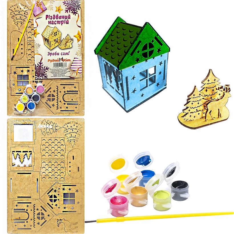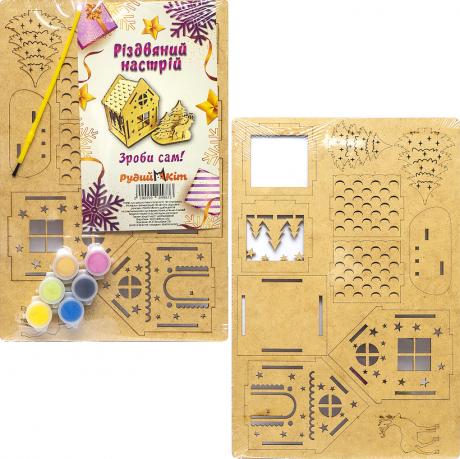 Набор Новогодний "Різдвяний настрій-Будинок, ялинка, олень" собери и раскрась, деревянный