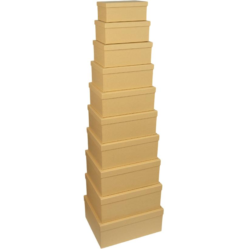 Стильный набор из 10 коробок разного размера, которые удобно складываются одна в другую. Подходит для упаковки подарков, хранения вещей, аксессуаров, документов и декоративного оформления.Внутри коробки белые, что делает их универсальными и практичными.