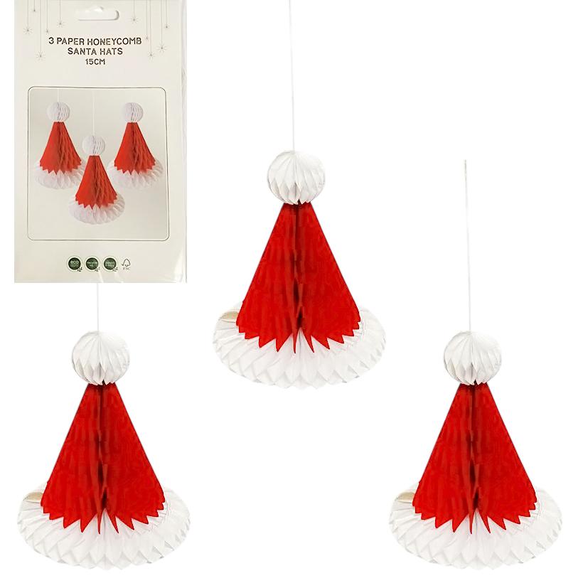 РАСПРОДАЖА! Набор подвесных бумажных новогодних украшений 3шт "Шапка Санты" CG-8