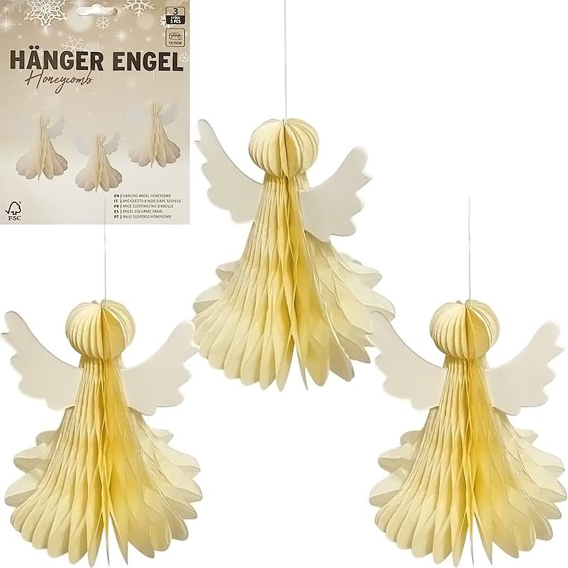 Набор подвесных украшений Honeycomb “Ангелы” включает 3 фигурки размером 13×15 см. Изделия выполнены из плотной бумаги в технике «соты», что придаёт им лёгкость и объём. В комплект входят 6 скрепок для удобного крепления. Украшения в виде ангелов станут изящным дополнением новогоднего или праздничного декора, создавая атмосферу тепла, уюта и нежности. Подходят для оформления дома, офиса, витрин или праздничных мероприятий. Упаковка: 15×19 см.