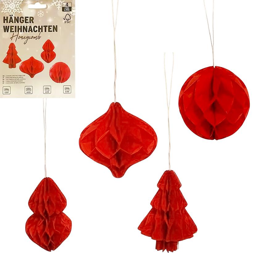 АКЦИЯ! Набор подвесных бумажных новогодних украшений 4шт "Красные фигуры" CG-1