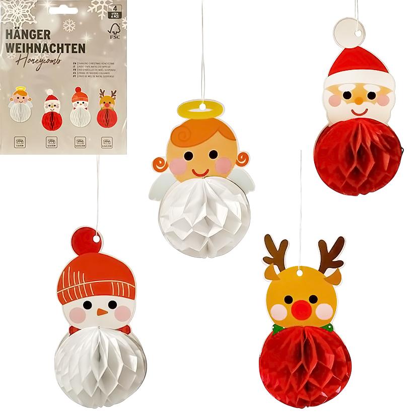 Набор подвесных бумажных новогодних украшений 4шт "Новогодние персонажи" CG-5