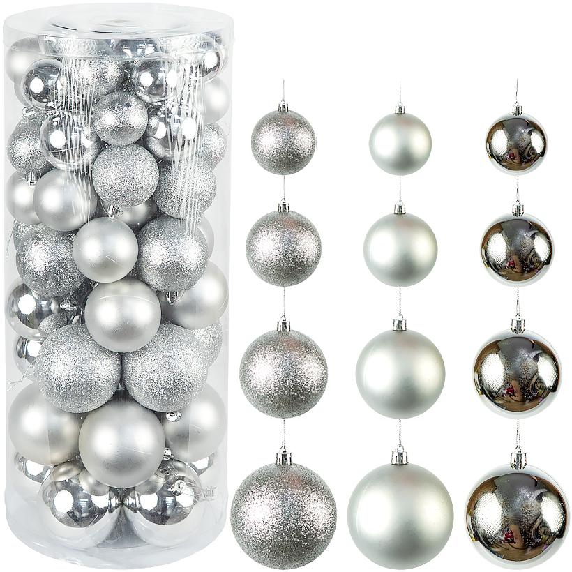РАСПРОДАЖА! Набор новогодних шаров D5/6/7/8см "Серебро" 6279-2 тубус
