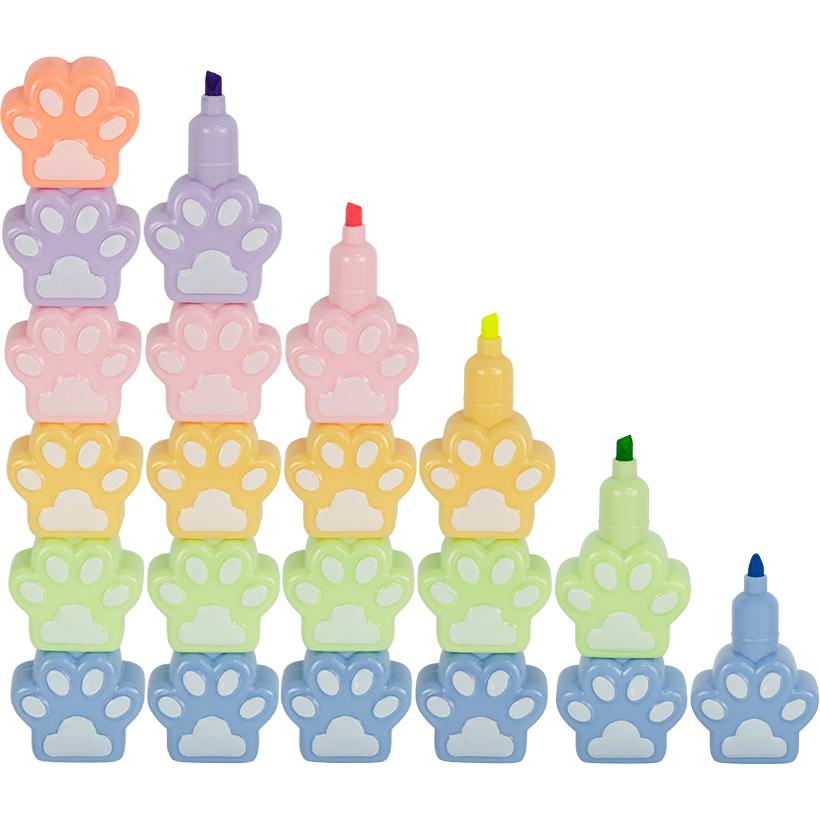 ТОТАЛ! Набор текстовыделителей 6 цветова "Кошачья лапка" JS-094