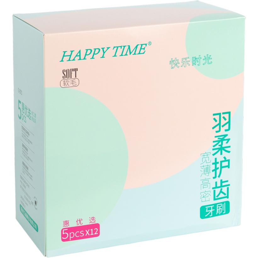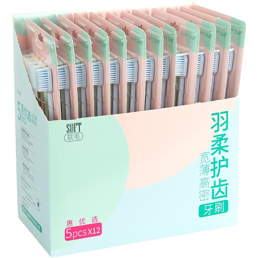 Набор зубных щёток «Happy time» E870 предназначен для ежедневной гигиены полости рта и удобен для семейного использования. В комплект входят 5 зубных щёток длиной 19 см, размещённых на одном блистере. Щётки оснащены синтетической щетиной мягкой жёсткости (soft), которая бережно очищает поверхность зубов и межзубные промежутки, эффективно удаляя налёт без раздражения дёсен и повреждения эмали. Эргономичная форма ручки обеспечивает удобный захват и контроль во время чистки. Формат набора позволяет рационально использовать щётки дома или в поездках. Блистер размером 12×23,5 см подходит для аккуратной розничной выкладки и хранения. Набор является практичным решением для оптовых интернет-магазинов, торговых сетей и магазинов товаров личной гигиены.
