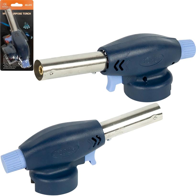 Газовая горелка-пистолет с пьезоподжигом предназначена для использования дома и на пикнике, в садоводстве, для разморозки, микросваривания, плавления и локального нагревания. Полная длина — 16,5 см, длина металлического сопла — 6 см, вес — 65 г. Оснащена регулировкой пламени и кнопкой запуска. Компактный корпус с вентиляционными отверстиями обеспечивает удобное использование. Металлическое сопло формирует направленный поток огня. Совместима со стандартными цанговыми газовыми баллонами. Товар выгодный для оптовых магазинов и подходит для розничной продажи.