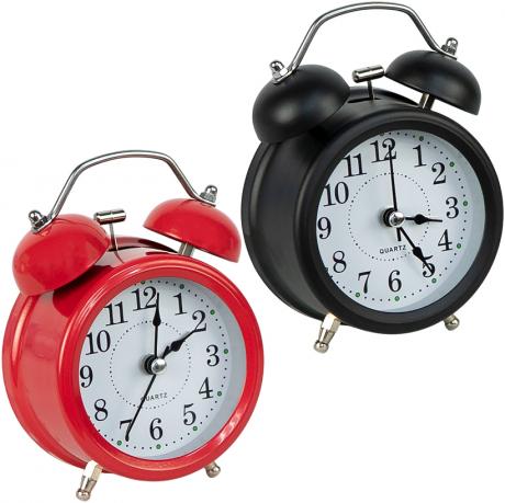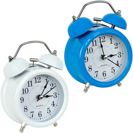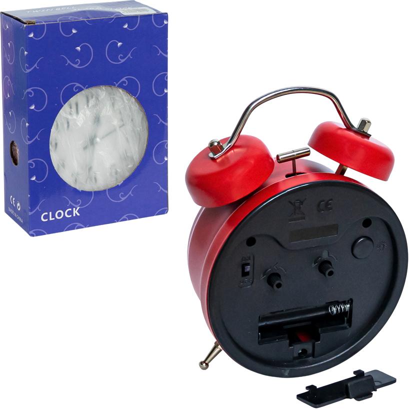 Настольные часы-будильник с ретро-дизайном и корпусом из прочного металла станут не только стильным, но и практичным аксессуаром для вашего интерьера. Оснащены классическим двойным звонком и удобной кнопкой подсветки для просмотра времени в темноте. Работают от одной батарейки типа AA (в комплект не входит). Возможна регулировка громкости сигнала, что делает их удобными для разных условий использования — дома, в офисе или в детской. Размер: 8×12×4,5 см. Подходят для размещения на прикроватной тумбочке, полке или рабочем столе.