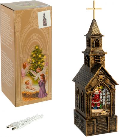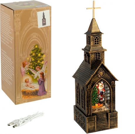 Новогодний декоративный фонарь с подсветкой и блёстками — изысканное украшение для создания праздничной атмосферы. Внутри — объёмная новогодняя сцена с фигурками, окружённая мерцающими частицами, которые красиво двигаются при включении. Верхушка поставляется отдельно и легко устанавливается. Устройство работает от 3 батареек AA (не входят в комплект) или от USB (провод входит). Доступны три режима: свет, свет + новогодняя мелодия, выключение. Размер изделия — 33×9×9 см. Поставляется в упаковке с пенопластовой защитой, размер коробки — 31×13×12,5 см.