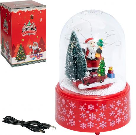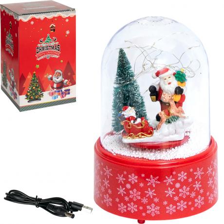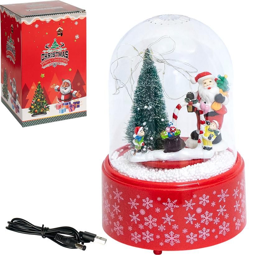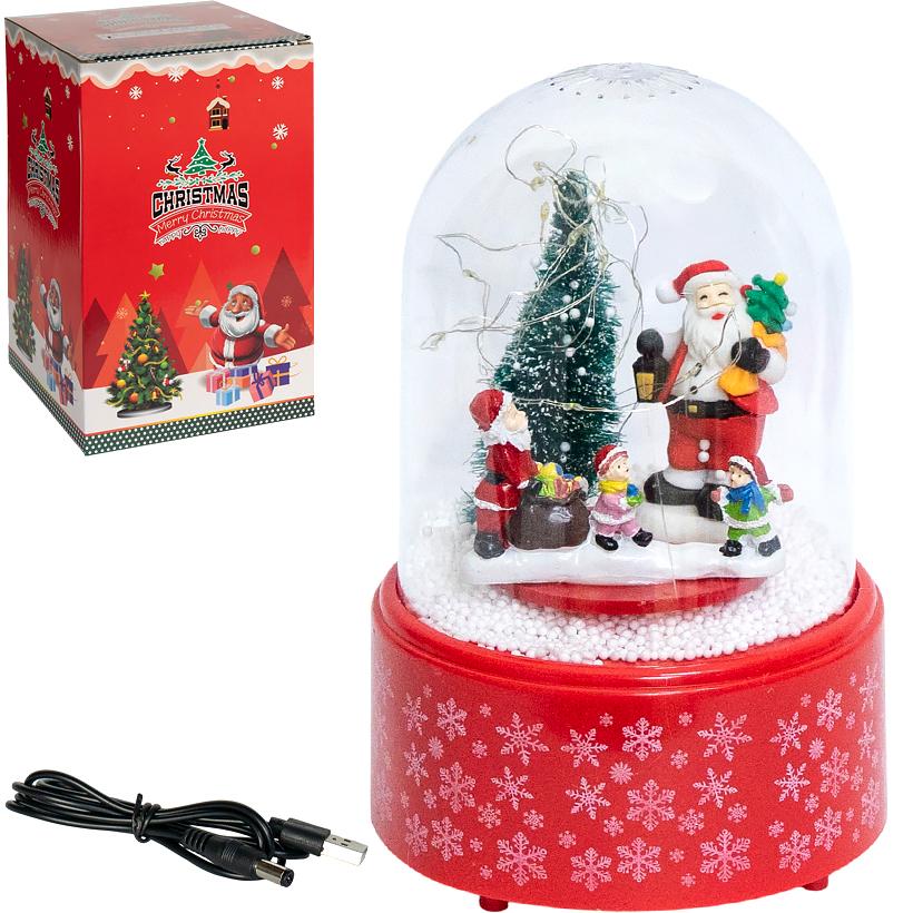 Новогодний декоративный шар ZY-1423 с фигуркой Санты — яркое украшение, создающее атмосферу зимней сказки. Оснащён пропеллером, который поднимает снежинки, имитируя метель, и подсветкой с мягким сиянием. Имеет 3 режима работы: выключено, с подсветкой, с подсветкой и мелодией. Работает от сети (USB-кабель в комплекте) и от 3 батареек АА (не входят). На верхней части предусмотрена петелька для подвешивания. Размеры: высота — 21 см, ширина — 14 см, диаметр дна — 11,5 см, диаметр шара — 10 см. Отличный вариант новогоднего декора и праздничного подарка.