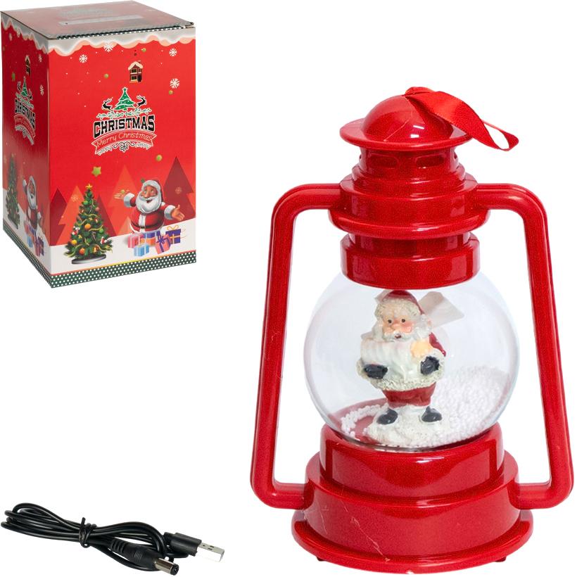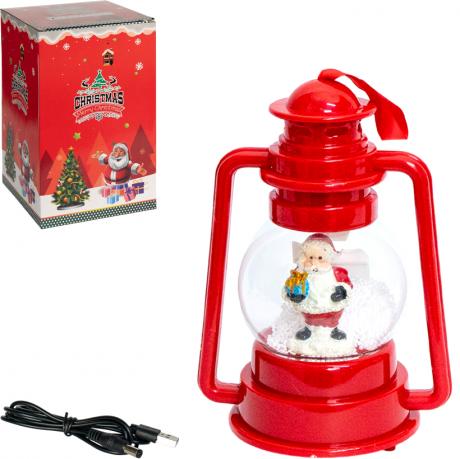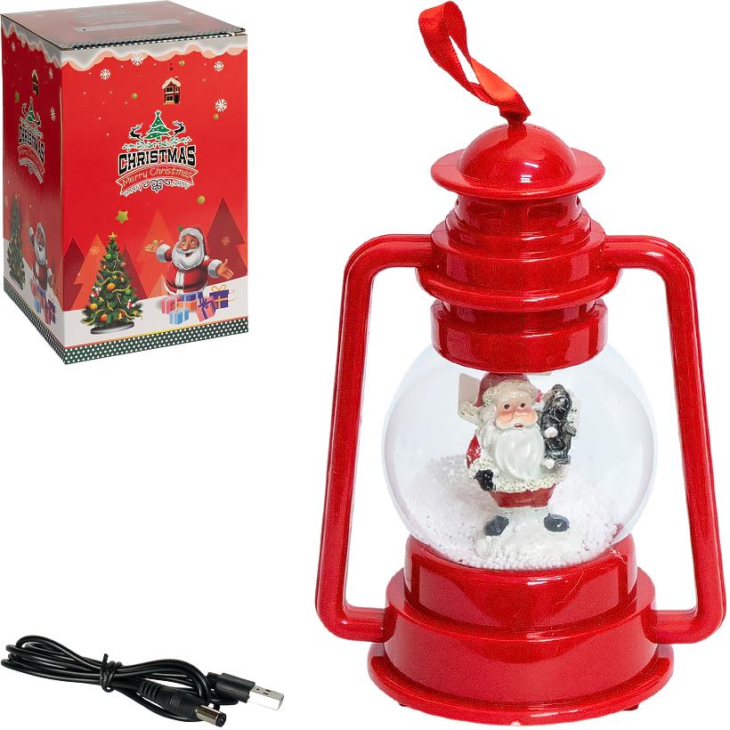 Новогодний декоративный фонарь с фигуркой Санты — яркое украшение, создающее атмосферу зимней сказки. Оснащён пропеллером, который поднимает снежинки, имитируя метель, и подсветкой с мягким сиянием. Имеет 3 режима работы: выключено, с подсветкой, с подсветкой и мелодией. Работает от сети (USB-кабель в комплекте) и от 3 батареек АА (не входят). На верхней части предусмотрена петелька для подвешивания. Размеры: высота — 21 см, ширина — 14 см, диаметр дна — 11,5 см, диаметр шара — 10 см. Отличный вариант новогоднего декора и праздничного подарка.