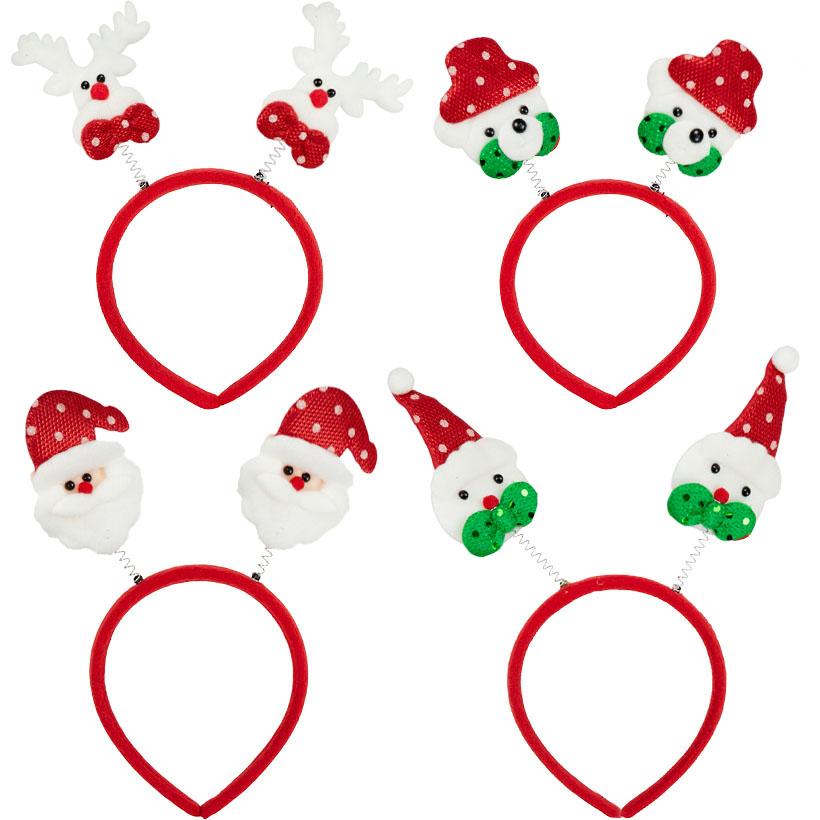 Праздничный ободок с новогодними фигурками на пружинках — стильный аксессуар для зимних мероприятий и фотосессий. Ободки украшены Санта-Клаусами, снеговиками и оленями в красных шапочках в горошек. Забавные фигурки качаются при движении, поднимая настроение и детям, и взрослым. Комфортная посадка, лёгкий вес и яркий дизайн делают его отличным выбором для утренников, карнавалов и вечеринок. Размер: 24×18 см.