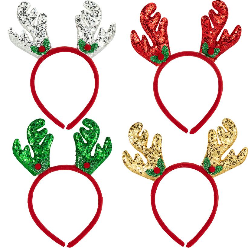 Сверкающие новогодние ободки с оленьими рожками — отличный праздничный аксессуар для вечеринок, фотосессий, корпоративов и детских мероприятий. Рожки украшены яркими пайетками и декоративными элементами в виде веточек с ягодками, создающими сказочное настроение. Лёгкие и удобные, подходят как взрослым, так и детям. В наличии модели в красном, зелёном, белом и золотом цветах. Размер изделия: 22×18 см.