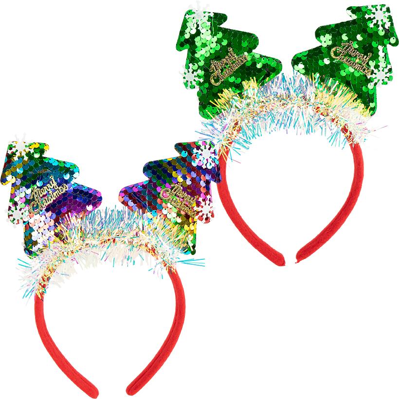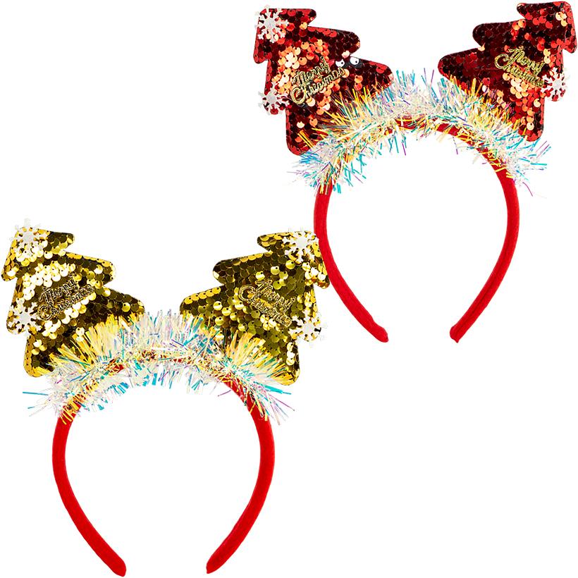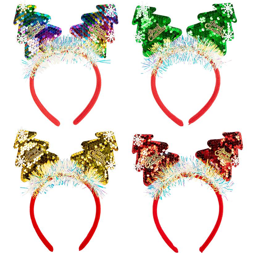 Ободок новогодний Звезды/Елочки/Олень с пайетками 2503