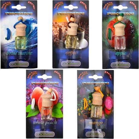 Авто освежитель воздуха с деревянной крышкой + стеклянная бутылка. В ассортименте 5 запахов. Размер: 5х2 см Объем: 5мл