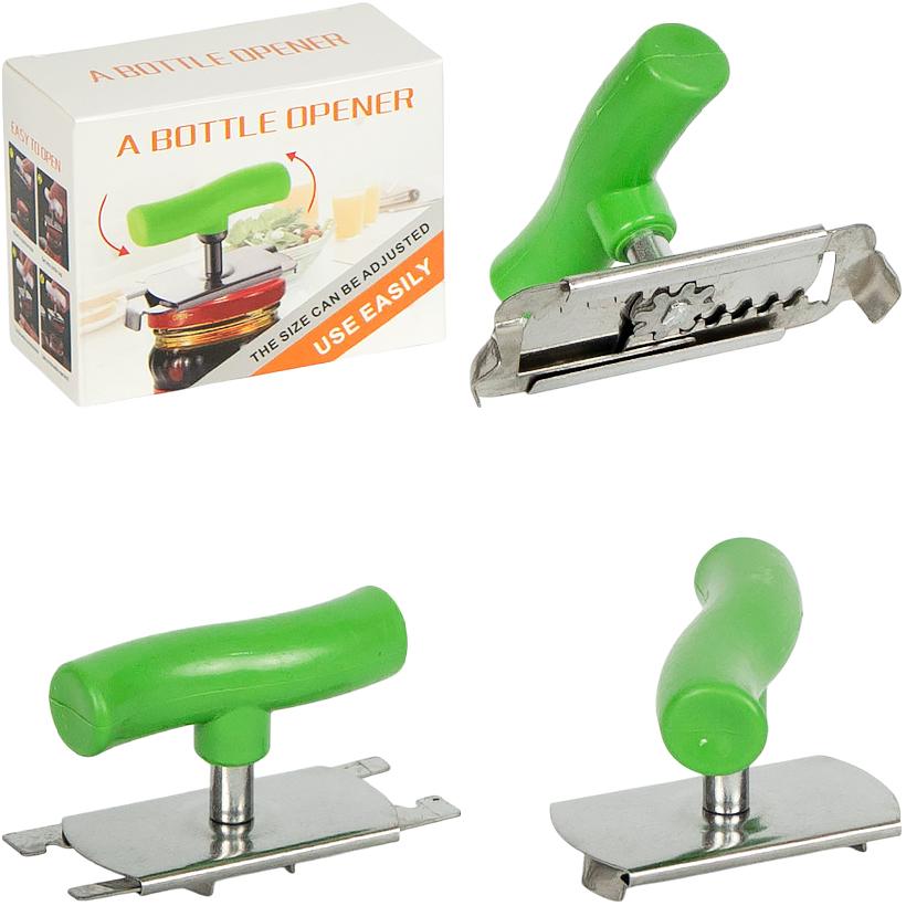 Ручной открыватель для бутылок и банок. Изготовлен из нержавеющей стали и пластика. Имеет гибкую конструкцию спиральной шестерни, что позволяет экономить усилия. Подходит для крышек диаметром от 2,5 до 10,2 см.