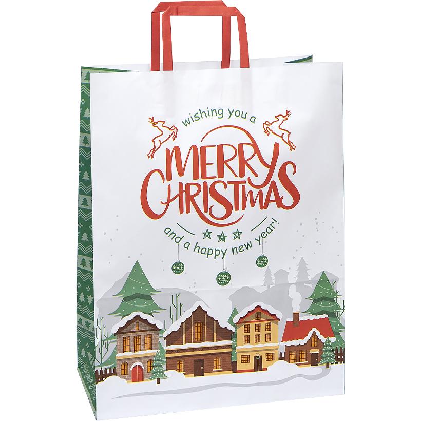 Пакет бумажный НОВОГОДНИЙ КРАФТ белый 32х15х42см KGB 324215-30 НР