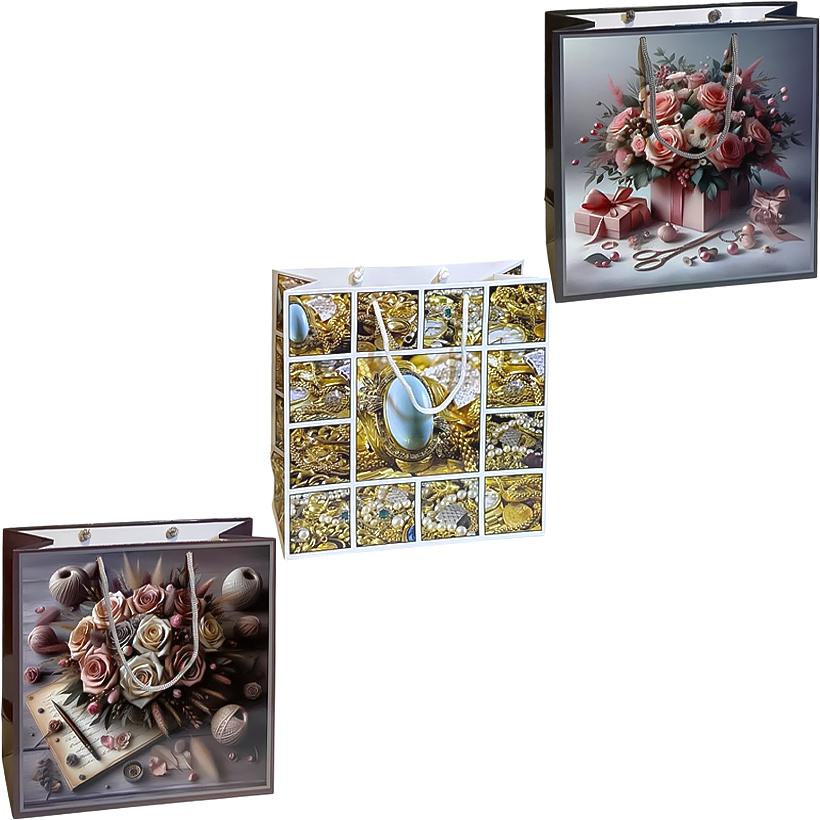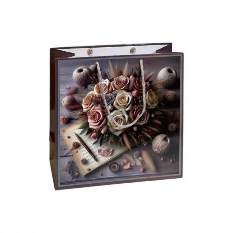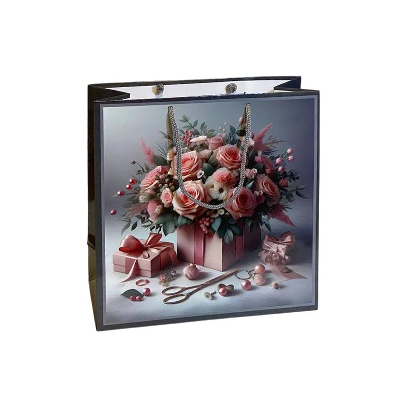 Подарочный пакет размером 24×24×10 см. Изготовлен из плотного материала с ручками-шнурками для удобства переноски. Яркий дизайн подходит для упаковки книг, косметики, аксессуаров и небольших сувениров.