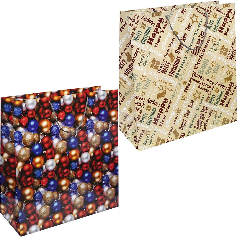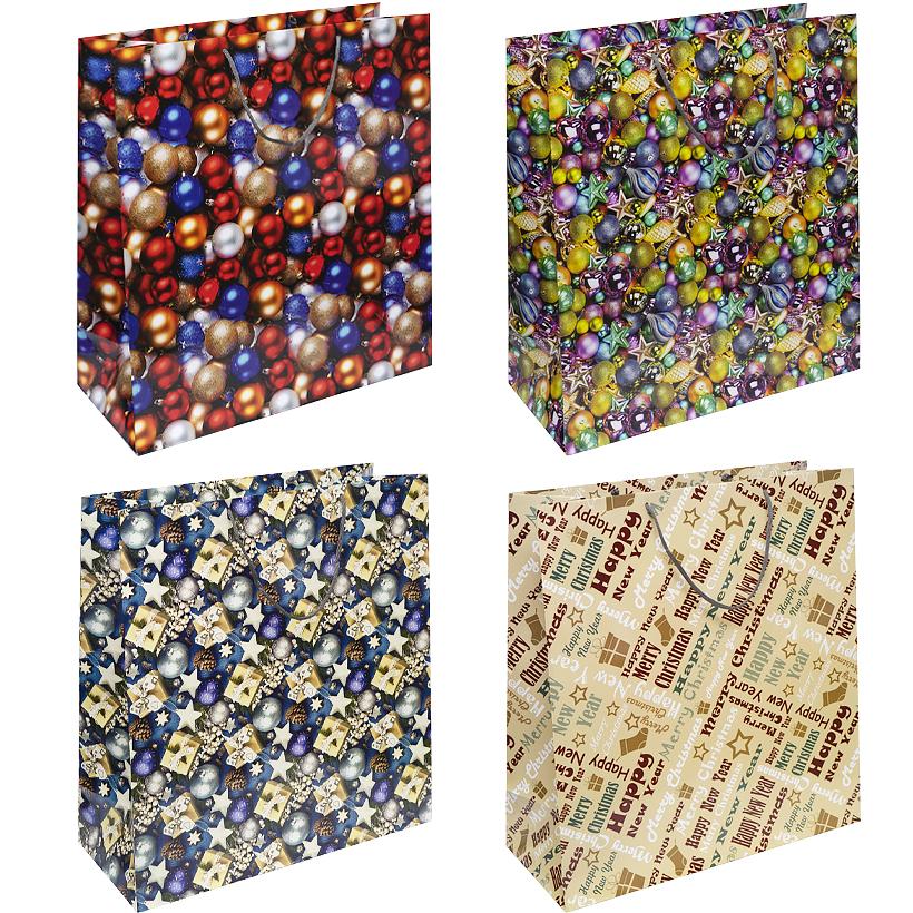 Подарочный пакет размером 52х47х20 см. Имеет ручки-шнурки. В упаковке 12 штук.