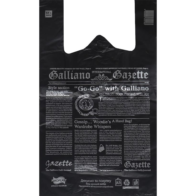 Пакет плотный полиэтиленовый майка "Газета" черный №4 50мкм