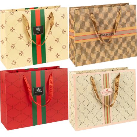 Подарочный пакет горизонтального формата с принтом — эффектное решение для презентабельной упаковки товаров. Высота — 26 см, ширина — 32 см, размер дна — 11 см. Материал — плотный картон, ручка выполнена из текстильной ленты. Принт подчёркивает дизайн и делает пакет более выразительным. Пакет подходит для упаковки косметики, аксессуаров, сувениров и подарков среднего размера. Прочная конструкция и устойчивое дно обеспечивают удобство при переноске. Товар выгодный для оптовых магазинов и подходит для розничной продажи. Цена указана за 1 единицу товара, продаётся упаковкой по 12 шт.