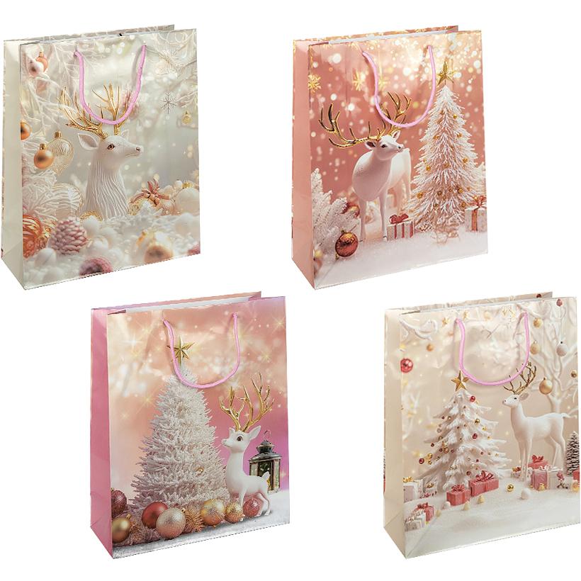 Подарочный пакет новогодней серии размером 26×32×10 см — универсальное решение для праздничной упаковки. Изготовлен из плотной ламинированной бумаги с глянцевым покрытием, устойчивым к влаге и повреждениям. Яркий дизайн с новогодними сюжетами создаёт атмосферу праздника и идеально подходит для упаковки сладостей, сувениров и подарков. Пакет оснащён прочными шнурковыми ручками для удобной переноски. В упаковке 12 штук (4 разных дизайна) — практичный выбор для розничной и оптовой продажи.