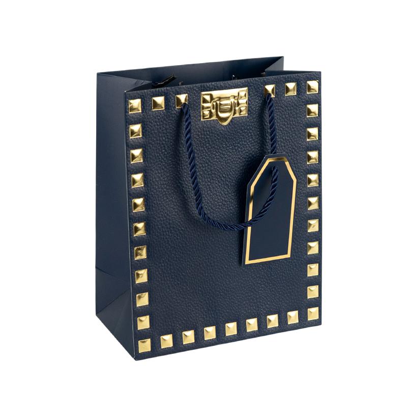 Пакет подарочный 26х32х12см с тиснением фольгой DARK BLUE HL-1926