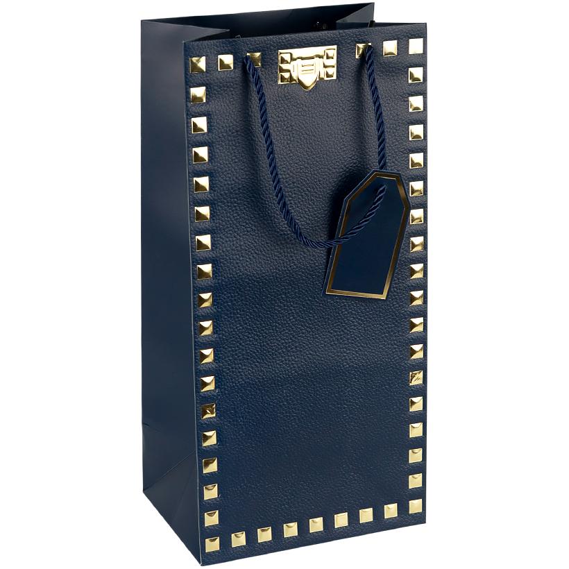 Пакет подарочный 38х18х13см с тиснением фольгой "Бутылка" DARK BLUE HL-1928