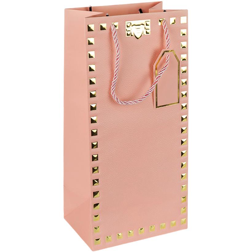 Пакет подарочный 38х18х13см с тиснением фольгой "Бутылка" PINK HL-1918