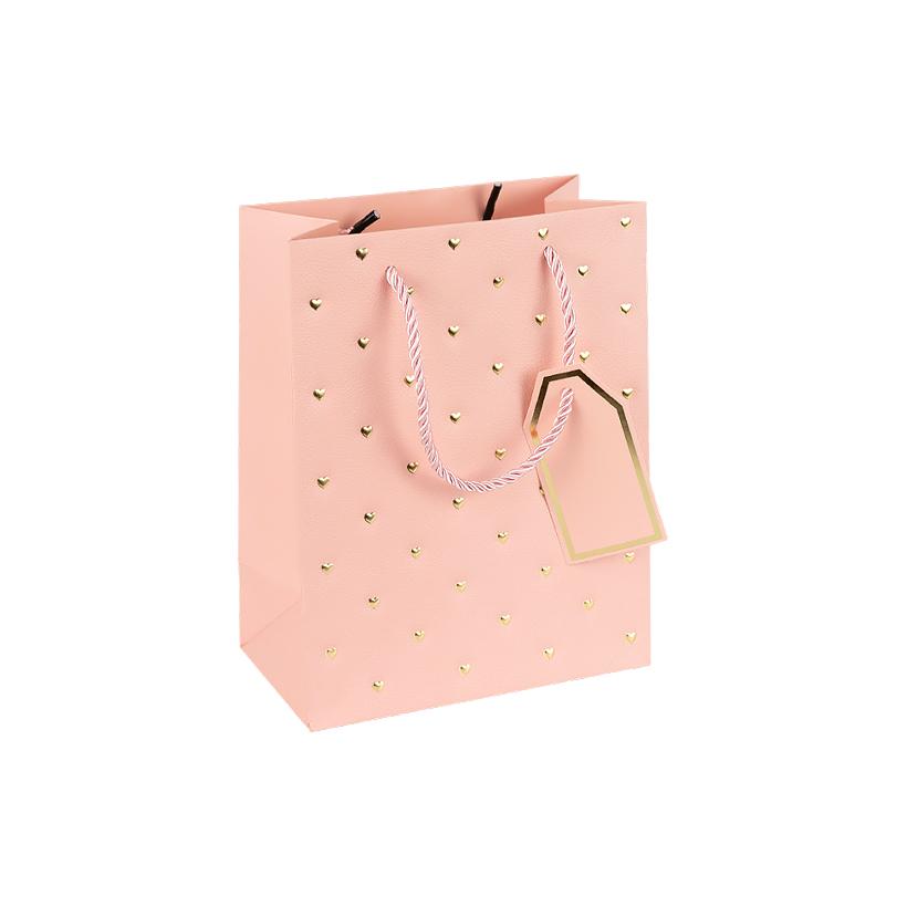 Пакет подарочный 18х23х10 см с тиснением фольгой "Сердечки" PINK HL-1958