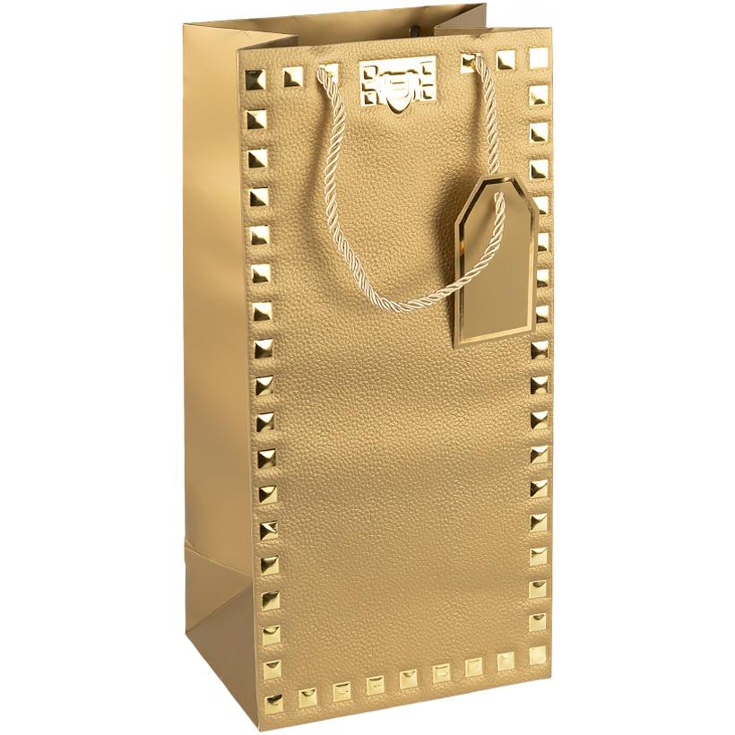 Пакет подарочный 38х18х13см с тиснением и золотым декором "Бутылка" GOLD HL-1913