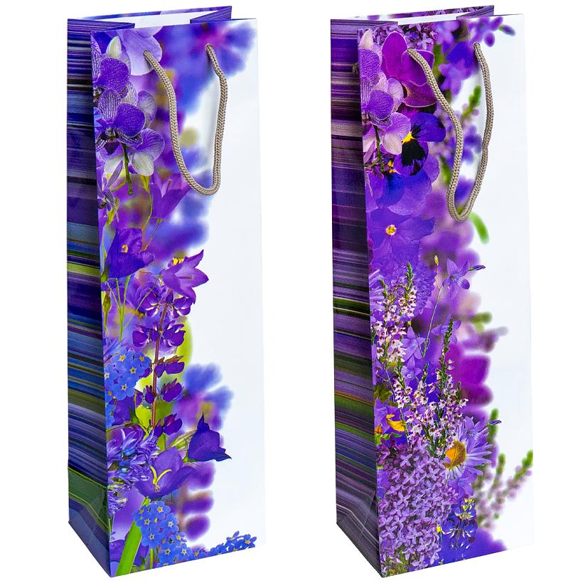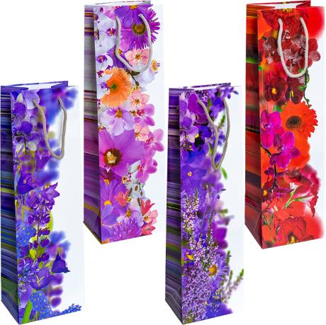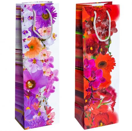 Пакет цветной "Бутылка - микс Цветы" 12х39х9 см 7005