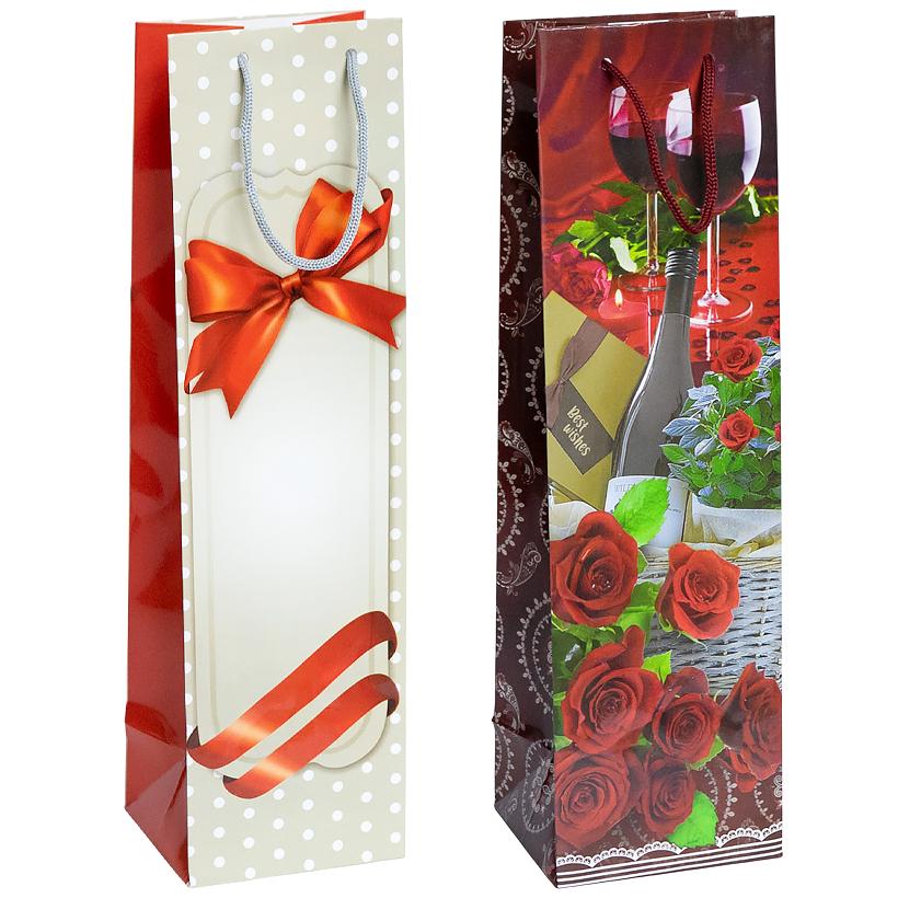 Пакет цветной "Бутылка" 12х39х9 см 7008