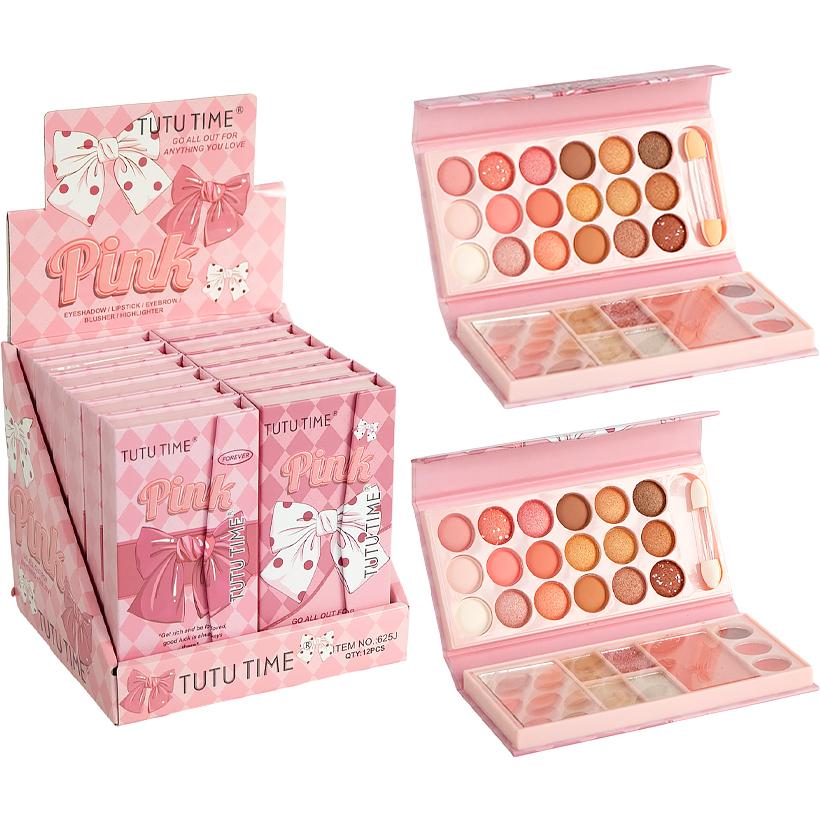Косметическая палетка с тенями, румянами и блесками — универсальный набор для повседневного и праздничного макияжа. В палетке яркие и нюдовые оттенки с матовой и шиммерной текстурами, которые легко растушёвываются и держатся в течение дня. Компактный формат удобно брать с собой, а стильный розовый дизайн делает палетку отличным подарком.