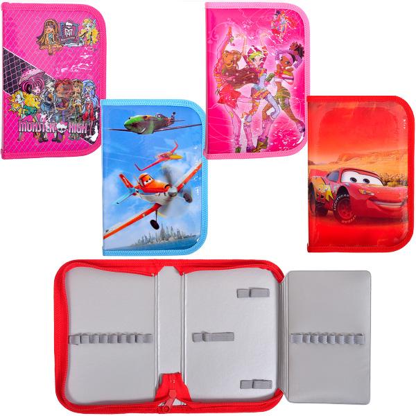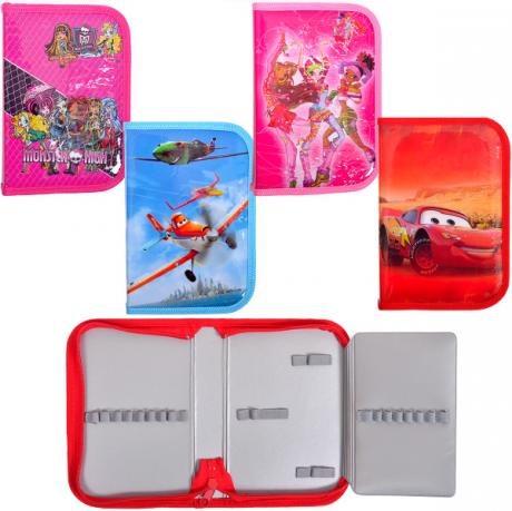 Пенал с 1 вместительным отделением на змейке и боковым клапаном, внутри которого расположены резиночки для крепления карандашей и ручек. Картики из популярных мультфильмов в ассортименте. Размер: 20х13х3,8 см