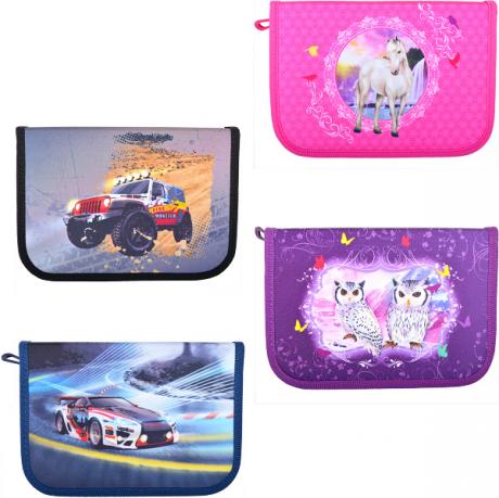 Пенал с 1 вместительным отделением на змейке и боковым клапаном, внутри которого расположены резиночки для крепления карандашей и ручек. Расцветка в ассортименте. Размер: 20х14х3 см