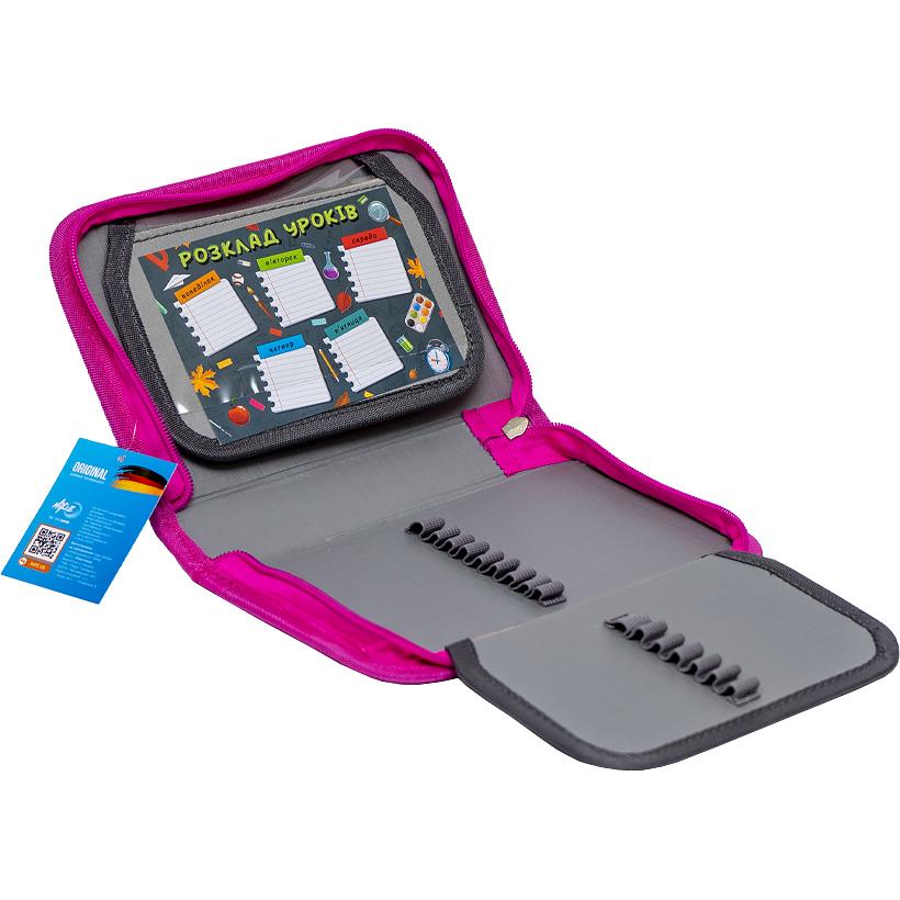 Прямоугольный пенал с молнией. Имеет одно отделение и два боковых клапана. Внутри находятся резиночки для крепления канцелярских принадлежностей и карточка расписания уроков на неделю. Изготовлен из износостойкого материала, легко складывается и застегивается. Размер 21х13,5х4 см.