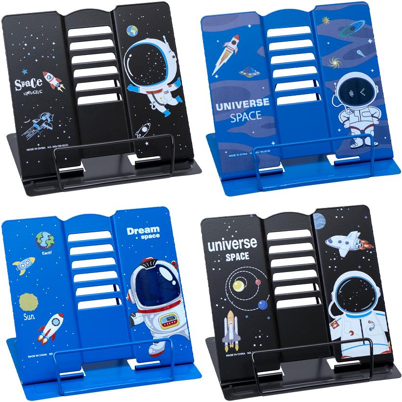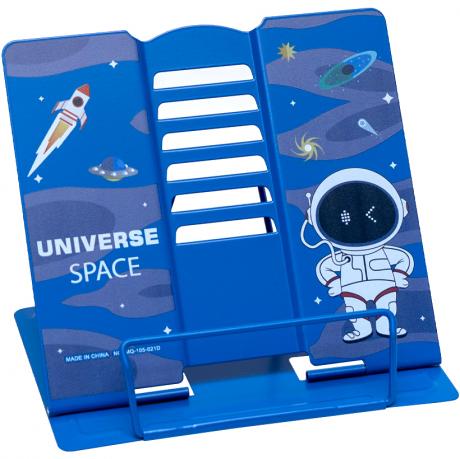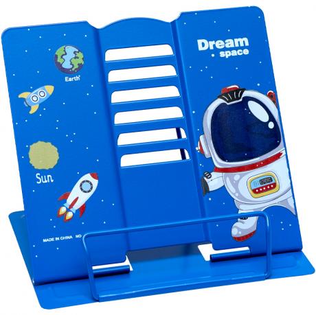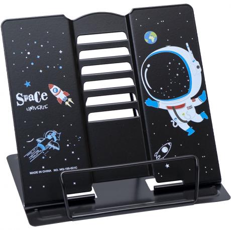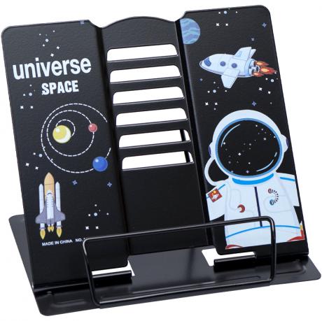 Это подставка для книг, выполненная из металла. Она способна надежно удерживать крупные учебники. Размеры рабочей части составляют 20х22 см, а основания - 16х20 см. Вес продукта - 420 г.