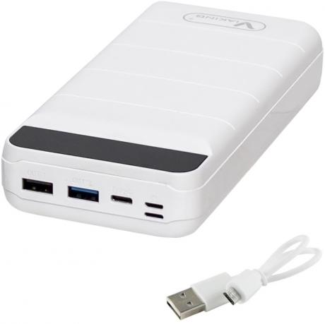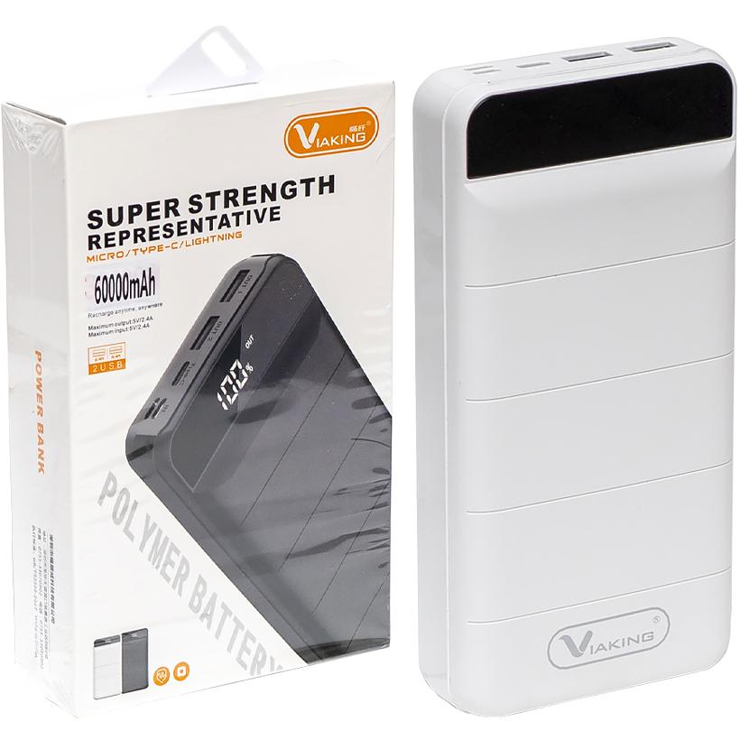 Портативный аккумулятор с емкостью 60000 мАч подходит для зарядки различных устройств. Оснащен двумя USB-портами, одним портом Type-C, micro USB и Lightning. Имеет светодиодный индикатор питания. Входной ток составляет 5V/5,4A, выходной ток — 5V/1,5A. Размеры устройства: 12х19х4 см, вес — 750 г.