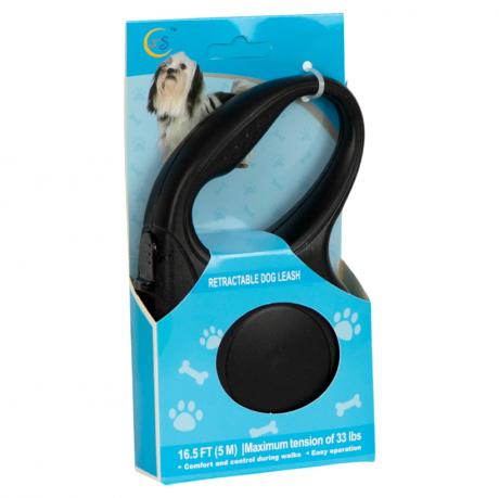 Рулетка для собак с автоматическим механизмом, длина поводка 5 м. Подходит для собак весом до 15 кг. Удобная эргономичная ручка обеспечивает комфорт при использовании, а прочный фиксатор позволяет легко регулировать и блокировать длину поводка. Подходит для ежедневных прогулок с мелкими и средними породами.