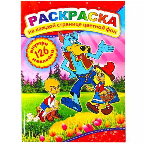 Раскраска цветная А4 с наклейками+подсказка "Советские мультфильмы"
