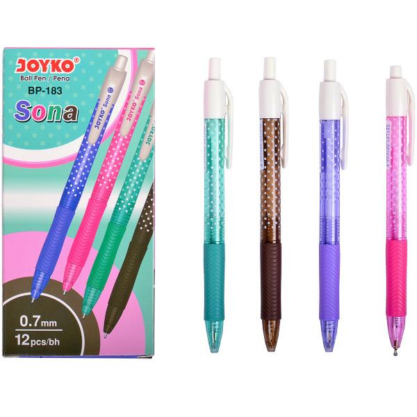 Ручка шариковая Joyko BP-183 на масляной основе. Толщина линии 0,7 мм. Материал корпуса пластмасса. Резиновый грип. Автоматическая. В упаковке 12 штук. Цвет: синий.