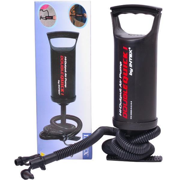 Ручний насос Intex 68612. Основное преимущество его в том, что насос надувает и при подъеме, и при опускании ручки. В комплект входит шланг-гармошка с тремя насадками-переходниками для надувания мячей, игрушек, лодок. Цвет: черный. Вес: 370 грамм. Комплектация: насос, гофрированный шланг, 3 насадки, инструкция. Материал корпуса: легкий ударопрочный пластик. Диаметр: 8 см. Размер: 30см